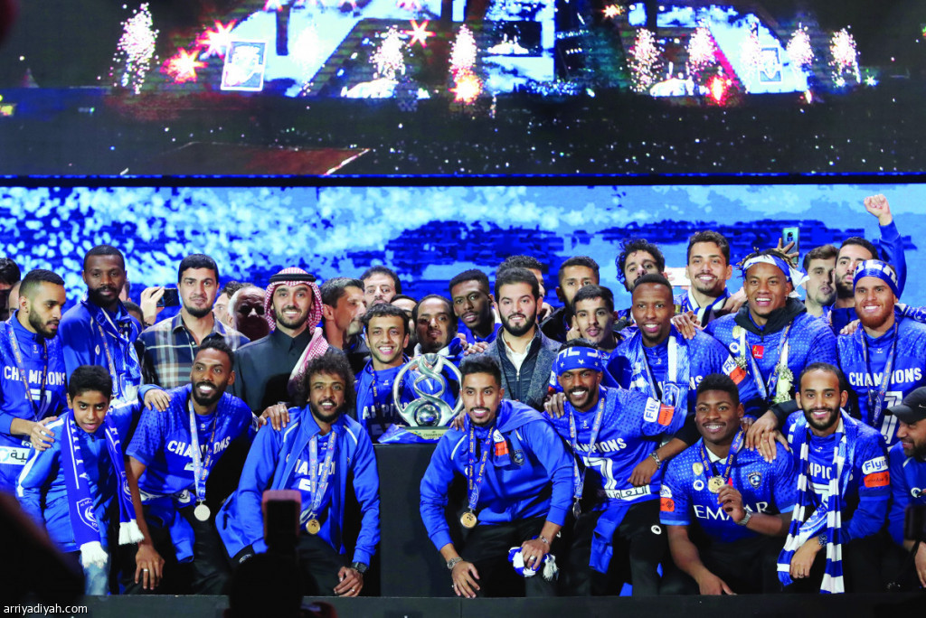 احتفلت الجماهير الهلالية بالفريق الأول لكرة القدم، بعد وصوله مباشرة من صالة الطيران الخاص في مطار الملك خالد الدولي في الرياض، إلى مقر الحفل الذي نظمته هيئة الرياضة في ميدان الدرعية عند الـ 8.15 من مساء أمس، وذلك عقب تحقيق الفريق لقب بطولة دوري أبطال آسيا 2019، بحضور الأمير عبد العزيز بن تركي رئيس الهيئة العامة للرياضة وأعضاء شرف النادي وكافة محبي الهلال.
