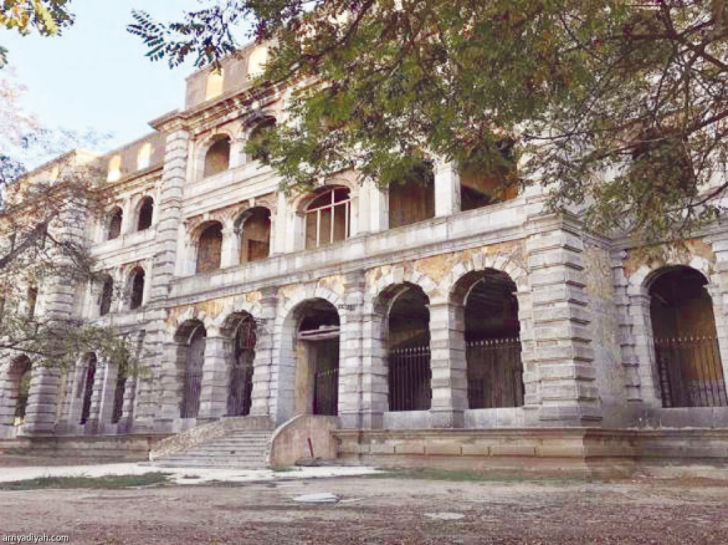 صورة التقطت لواجهة فندق صوفر المهجور الواقع في قضاء عاليه اللبناني (أرشيفية)