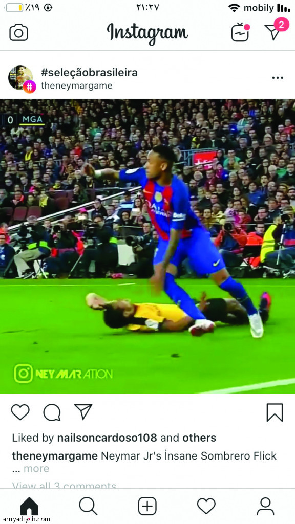 تغنى حساب السامبا في منصة التواصل الاجتماعي إنستجرام، بنيمار نجم وقائد منتخب البرازيل الأول لكرة القدم، خلال محطته السابقة مع برشلونة التي حصد فيها العديد من البطولات الكبيرة يتقدمها بطولة لقب دوري أبطال أوروبا، وبلغ عدد مشاهدي فيديو نيمار نحو 15 ألفاً.