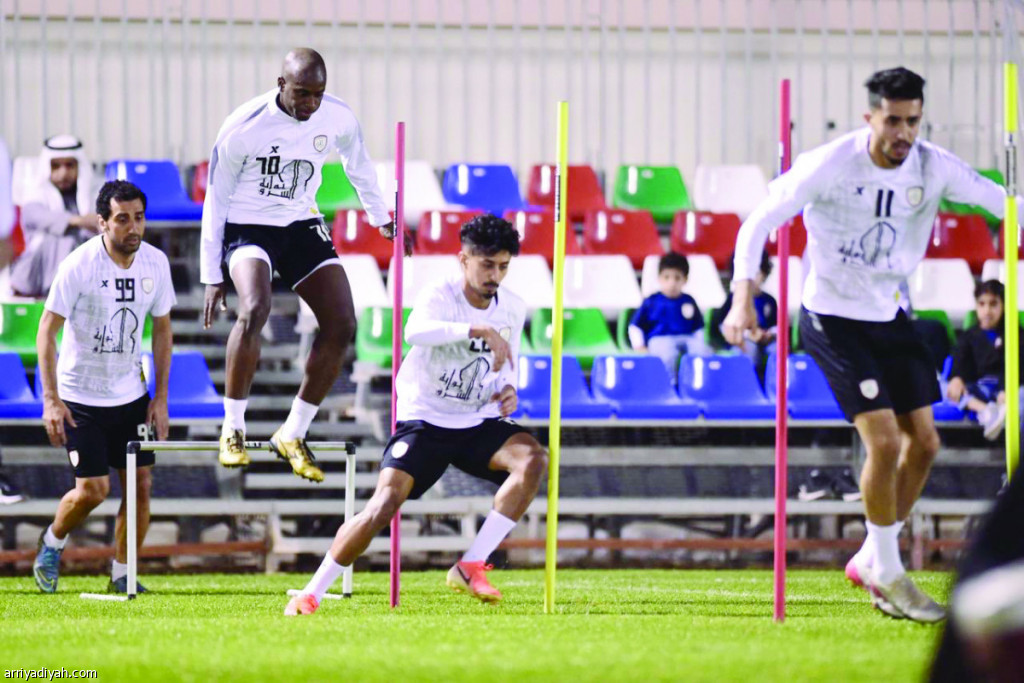 صورة التقطت أمس للرباعي سلطان كعبي وحسن القيد وإسبريا وحسن الراهب لاعبي فريق الشباب يؤدون تدريبات تخطي الحواجز في مران فريقهم استعدادًا لمواجهة الشعلة في دور الـ 32 من كأس الملك (المركز الإعلامي ـ الشباب)