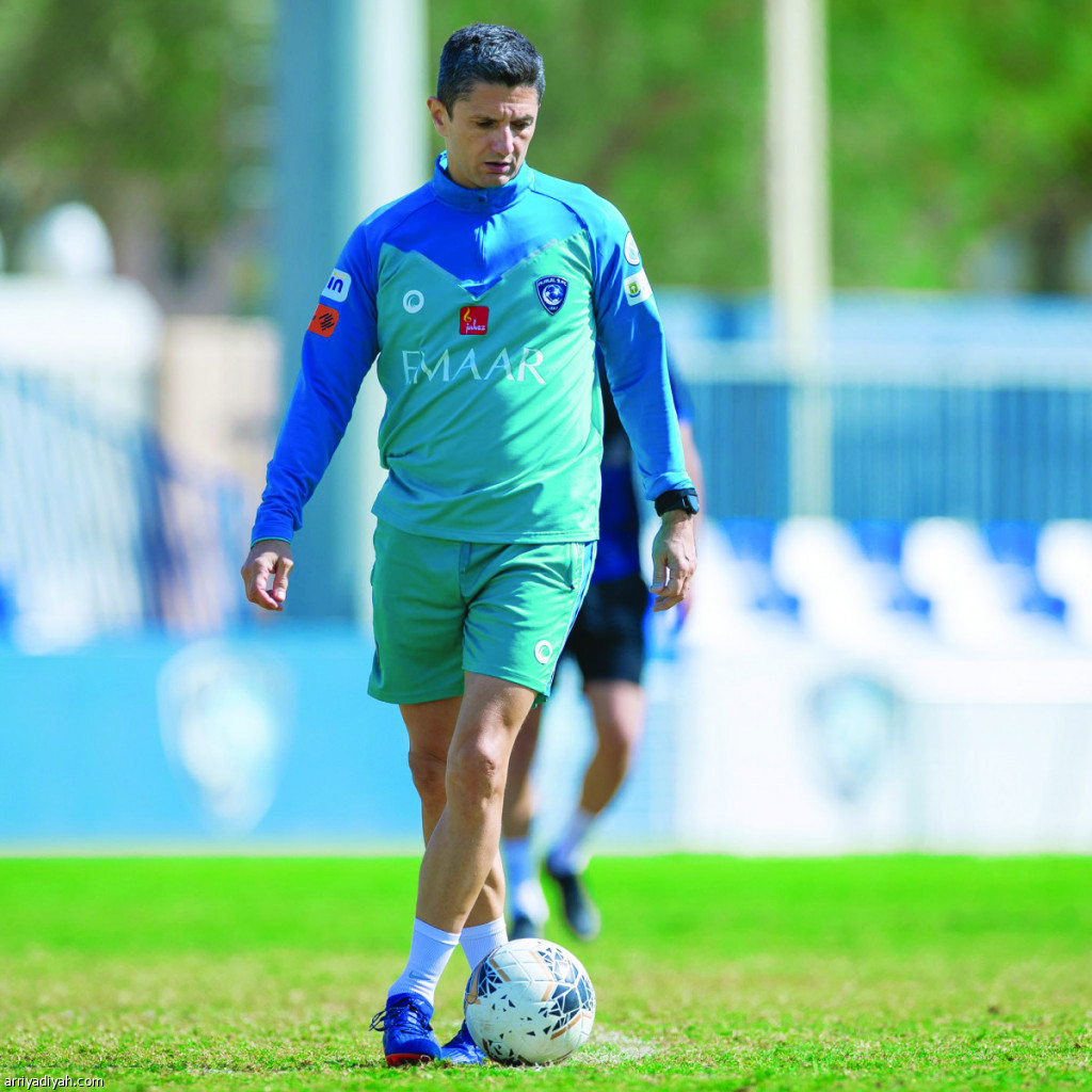 صورة التقطت أمس لرازفان مدرب الهلال يداعب الكرة في التدريبات (المركز الإعلامي ـ الهلال)
