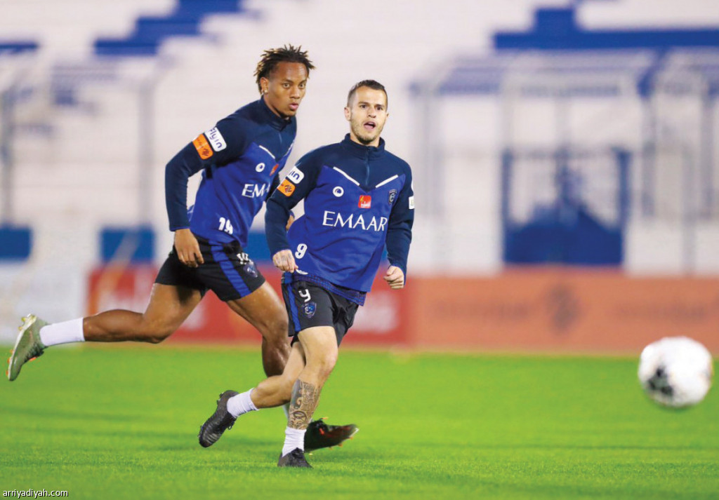 صورة التقطت أمس الثنائي البيروفي كاريلو والإيطالي جوفينكو خلال مشاركتهما في الحصة التدريبية للفريق العاصمي استعدادًا لمواجهة الجبلين اليوم (المركز الإعلامي ـ الهلال)