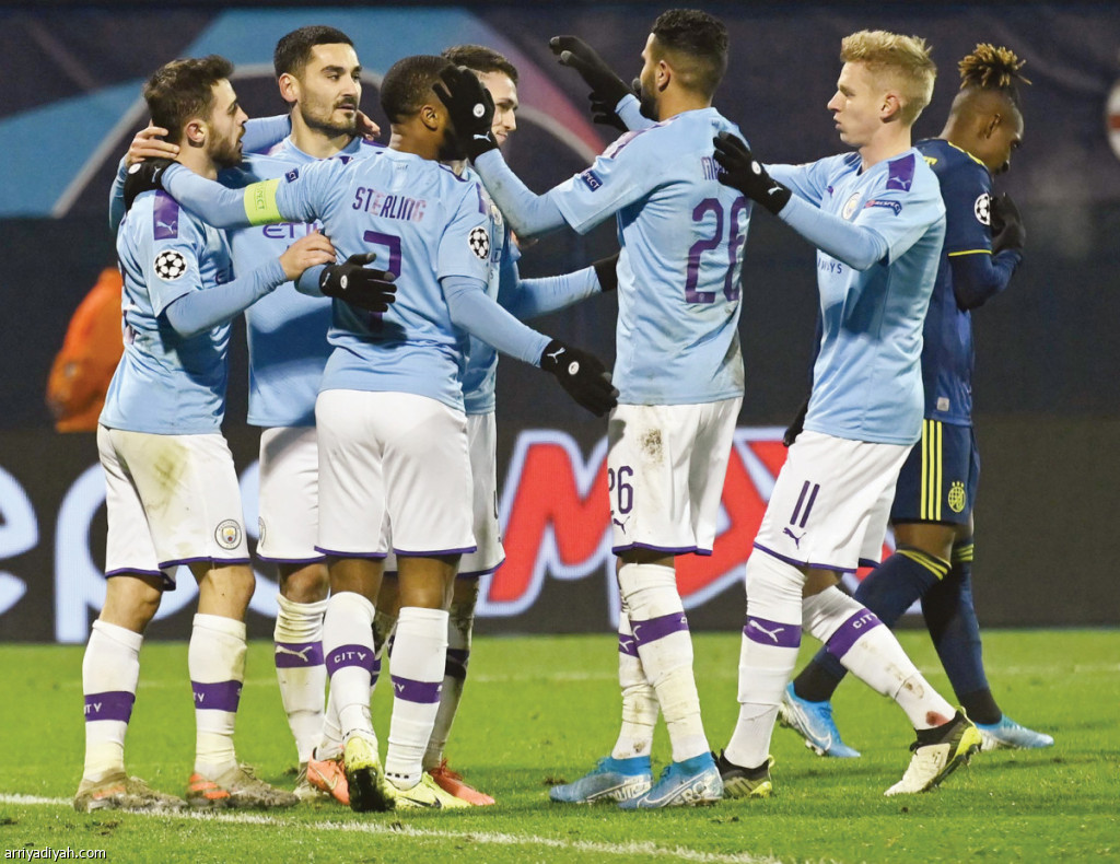 تصدر مانشستر سيتي الإنجليزي مجموعته في دوري الأبطال بعد فوزه على مستضيفه دينمو زغرب الكرواتي 4ـ1.. وفي الصورة التي التقطت أمس لاعبو مانشستر سيتي يحتفلون بعد تسجيل أحد أهداف المباراة