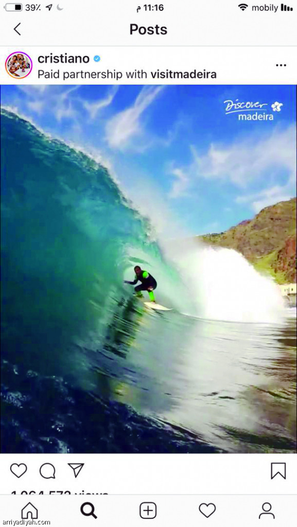 روّج البرتغالي كريستيانو رونالدو مهاجم فريق يوفنتوس الأول لكرة القدم للسياحة في جزيرة ماديرا البرتغالية مسقط رأسه وذلك عبر مقطع فيديو حسابه على إنستجرام.