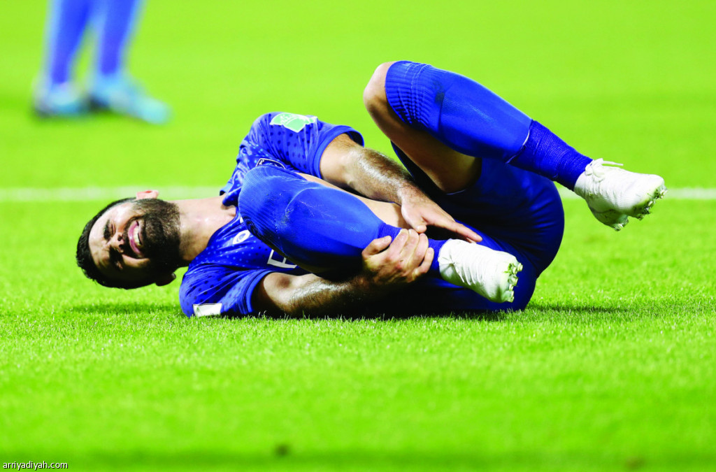 صورة التقطت أمس للسوري عمر خربين لاعب الهلال يسقط على الارض متألما بعد تعرضه لاصابة خلال مواجهة الترجي التونسي (رويترز)