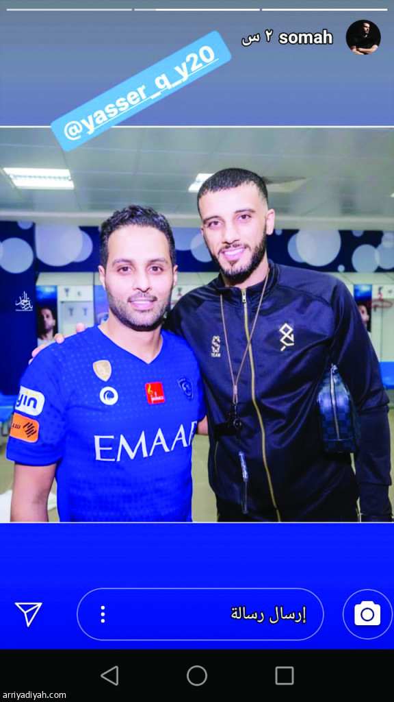 نشر عمر السومة، لاعب فريق الأهلي، في حسابه على “إنستجرام”، أمس صورتين تجمعانه مع ياسر القحطاني، لاعب الهلال السابق، في حفل اعتزاله. وجاءت الصورة الأولى قبل انطلاق مباراة اعتزال القحطاني، والثانية يعانقه في الملعب.