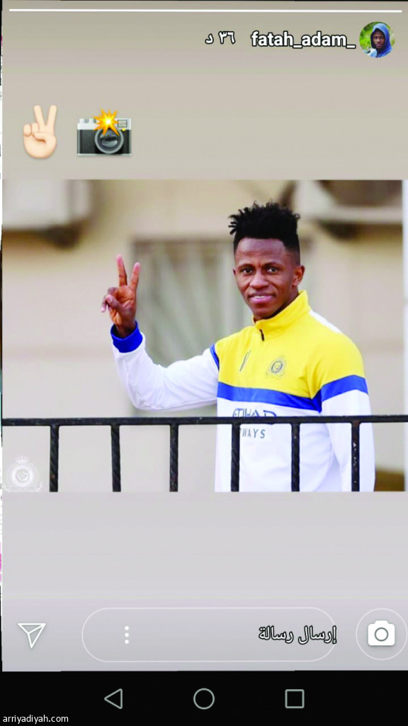 ظل عبد الفتاح آدم، لاعب فريق النصر، يشكل حضورًا يوميًّا في “إنستجرام” بعد هدفه في التعاون. ونشر آدم صورة، أمس، في حسابه على “إنستجرام” يشير فيها بعلامة النصر، بينما نشر قبلها صورة الاحتفالية بالهدف وخلال التدريبات التي أعقبت المباراة.