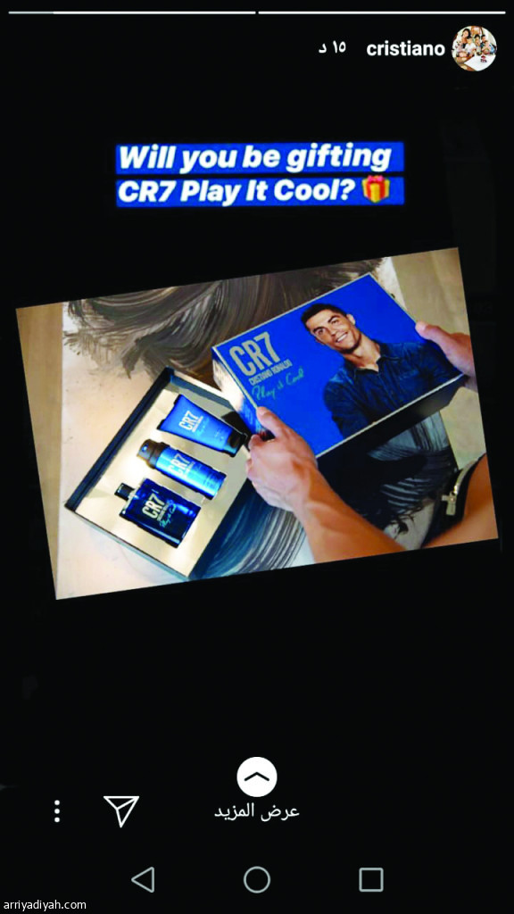 شارك البرتغالي كرستيانو رونالدو متابعيه في إنستجرام ببوست لمجموعة عطور تحمل علامته التجارية CR7. وعلق اللاعب الدولي على البوست قائلًا “هل يمكن أن تهدي cr7”، وحظي البوست بنحو 400 ألف تفاعل خلال نصف ساعة فقط من بثه.