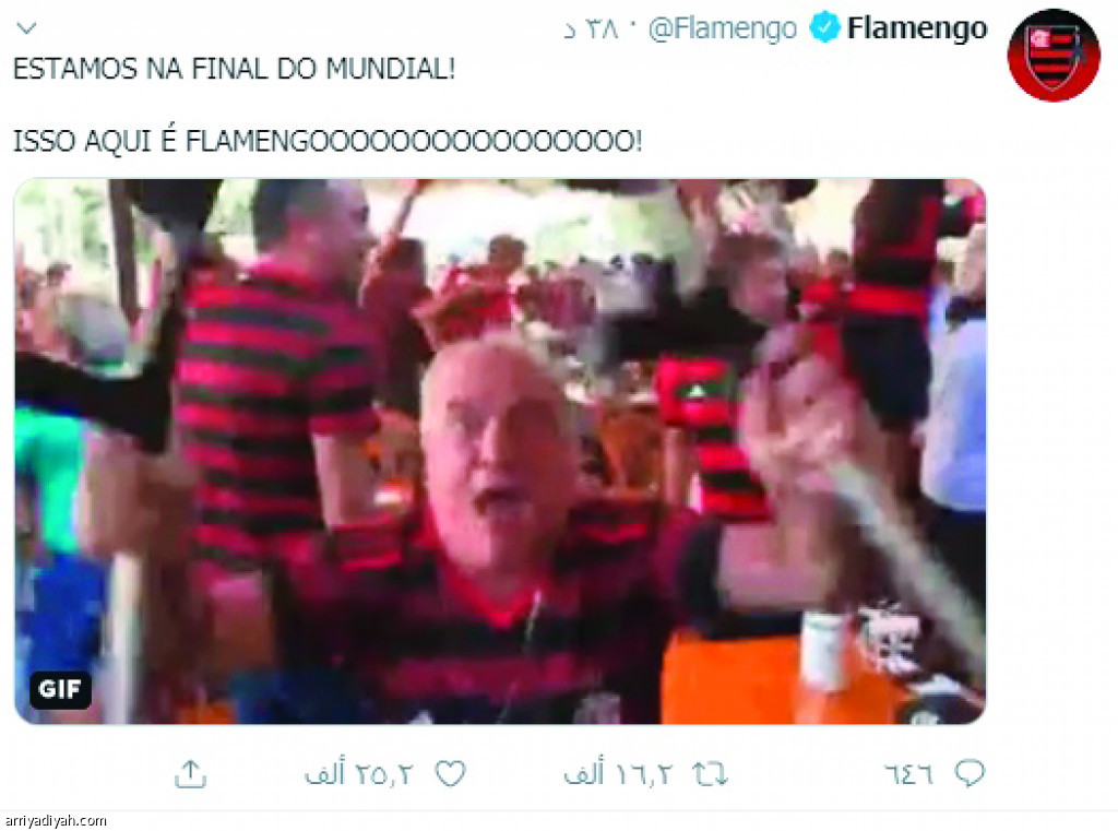 حظيت فرحة مسن برازيلي بتأهل فلامنجو إلى المباراة النهائية لبطولة كأس العالم للأندية بأكبر تفاعل من المغردين البرازيليين.
