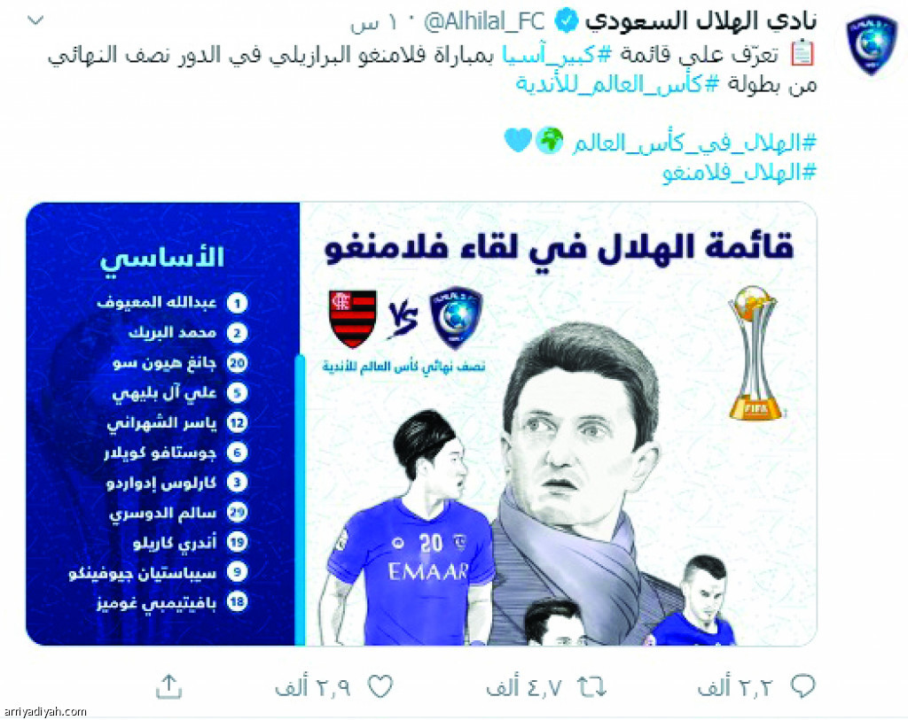 تباينت ردود فعل جماهير الهلال وفلامنجو على تشكيلة الروماني رازفان لوشيسكو والبرتغالي خيسوس بعد نشرهما على حسابيي الناديين في موقع التواصل الاجتماعي “تويتر”.