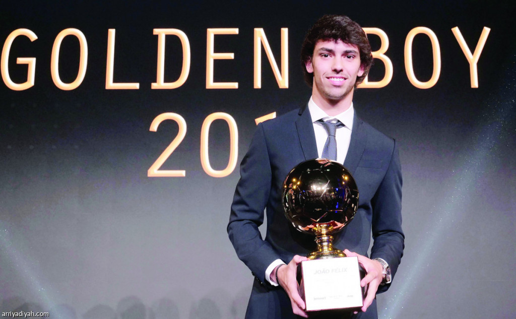 تسلم البرتغالي جواو فيليكس، مهاجم فريق أتلتيكو مدريد الإسباني الأول لكرة القدم، أمس، جائزة الفتى الذهبي عن 2019، التي تمنحها صحيفة توتو سبورت الإيطالية للاعبين أقل من 21 عامًا، وذلك في حفل في مدينة تورينو.