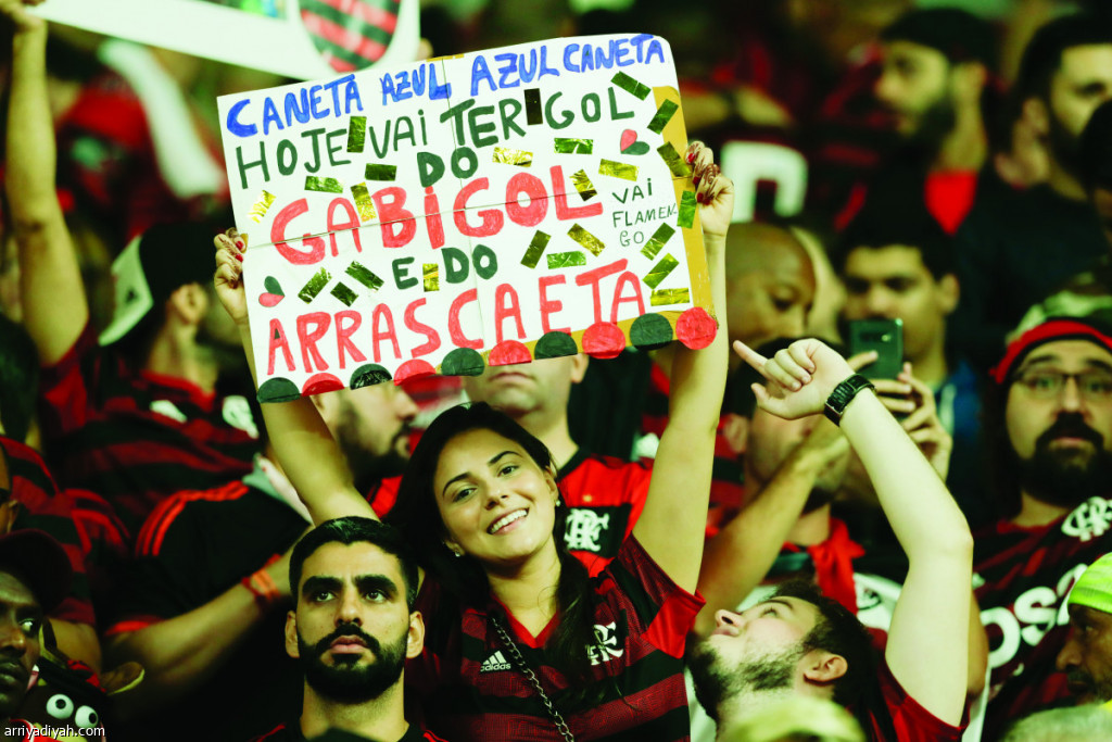 حظي جابرييل باربوسا مهاجم فلامنجو البرازيلي الملقب بـ “جابي جول” بدعم خاص من قبل جماهير فريقه أمام الهلال في الدور نصف النهائي من بطولة كأس العالم للأندية.. وفي الصورة التي التقطت أمس مشجعة برازيلية تحمل لافتة عليها عبارات تحفيزية للمهاجم البرازيلي