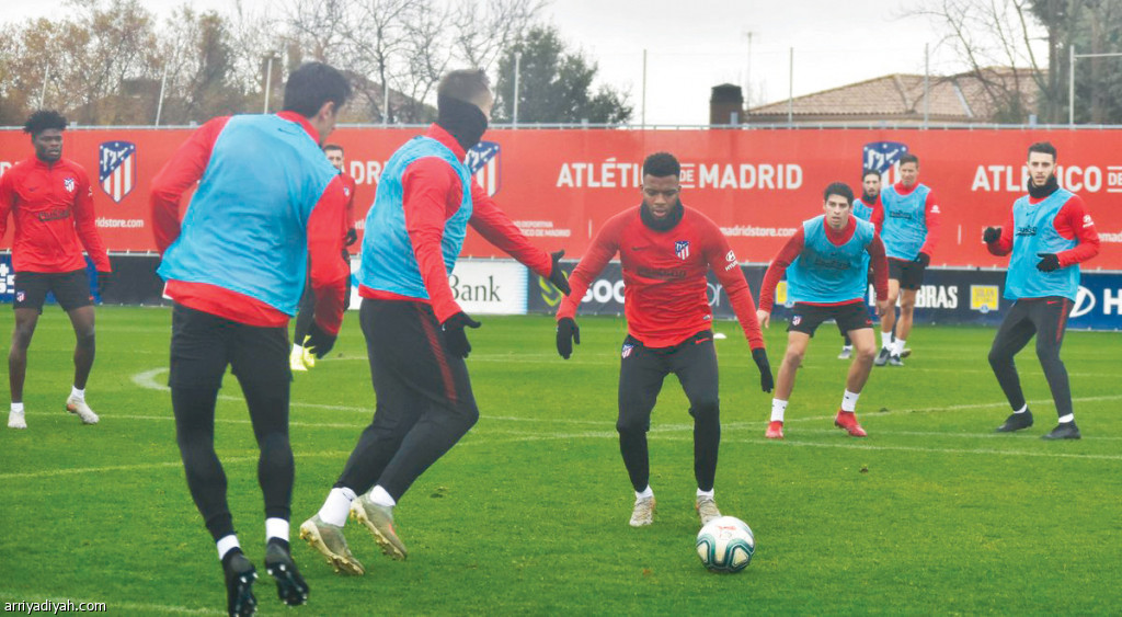 اقترب أتلتيكو مدريد لضم المهاجم إدينسون كافاني بعقد لمدة 3 أعوام.. وفي الصورة التي التقطت أمس الأول يظهر عدد من لاعبي أتلتيكو خلال التدريبات (المركز الإعلامي - أتلتيكو مدريد)