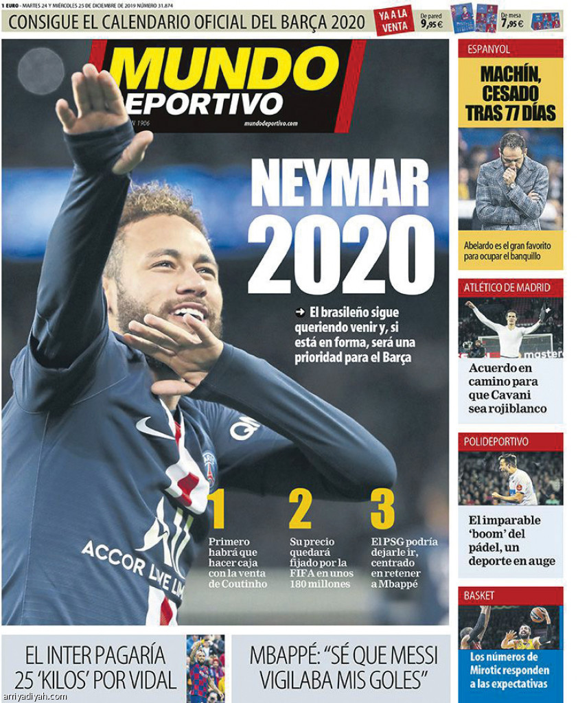 وأوضحت “موندو ديبورتيفو” أن نيمار مستعد لإنهاء مشكلاته القضائية مع برشلونة، بشرط تعهد الأخير بضمه الصيف المقبل.
