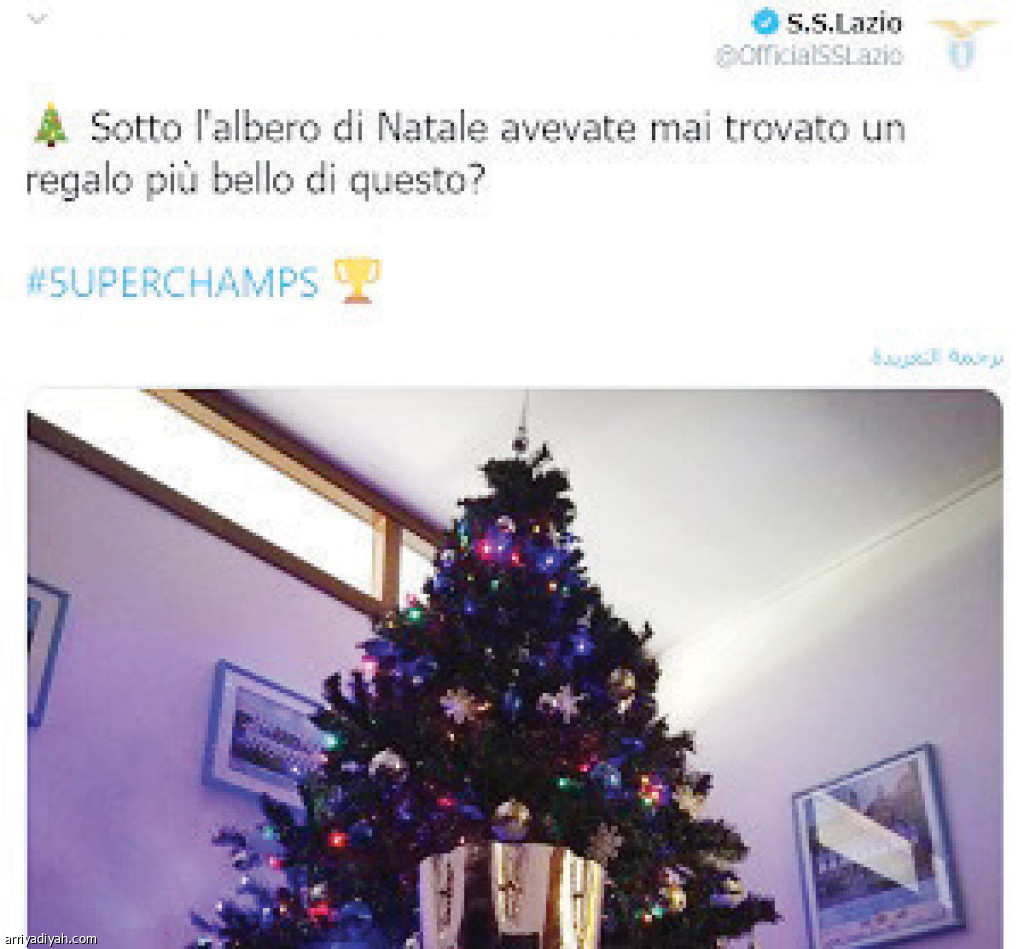 وعلق الحساب على صورة الكأس الذي ظهرت خلفه شجرة عيد الميلاد، قائلًا: “كأس السوبر.. أفضل هدية”.