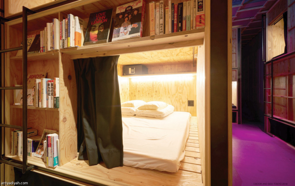يوفر الفندق، المسمى “سرير وكتاب طوكيو”، أسرّةً داخل أرفف الكتب الخشبية، بمساحة 129 سم في 205 سم “4 أقدام في 7”، مع إضاءة خافتة وستارة.