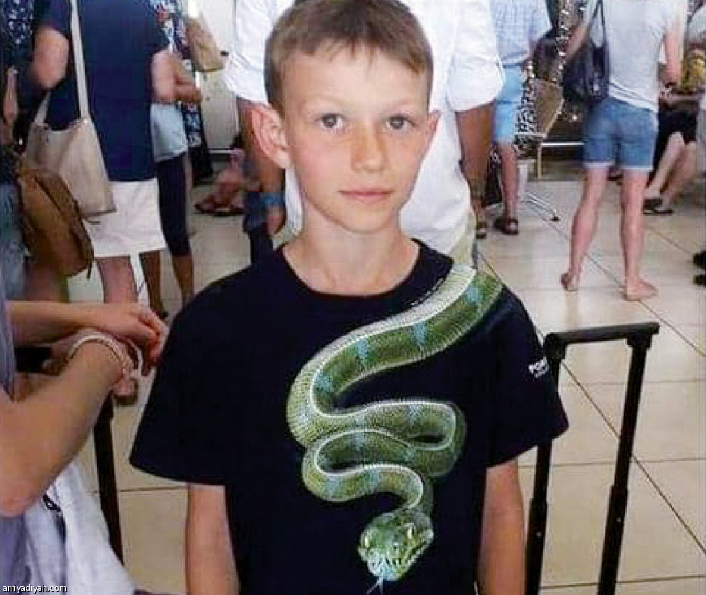 أجبرت سلطات الأمن في مطار جوهانسبرج طفلاً على تغيير ملابسه قبل أن يستقل الطائرة بحجة أن قميصه سيثير فزع المسافرين. وكان ستيفي لوكاس يرتدي قميصاً مطبوعاً عليه صورة ثعبان ضخم، وخير موظفي الأمن عائلته بين استبداله أو عدم صعود الطائرة. وتوصل الطرفان إلى حل وسط، يقضي بقلب القميص و إرجاع صورة الثعبان إلى الخلف