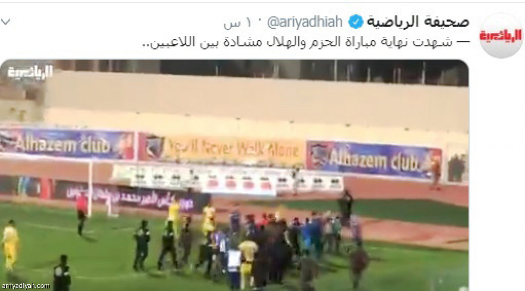 حظي الفيديو، الذي نشره حساب “الرياضية” على موقع التواصل الاجتماعي “تويتر”، لمشادة لاعبي الحزم والهلال بعد نهاية المباراة، بنحو 90 ألف تفاعل خلال ساعة واحدة.