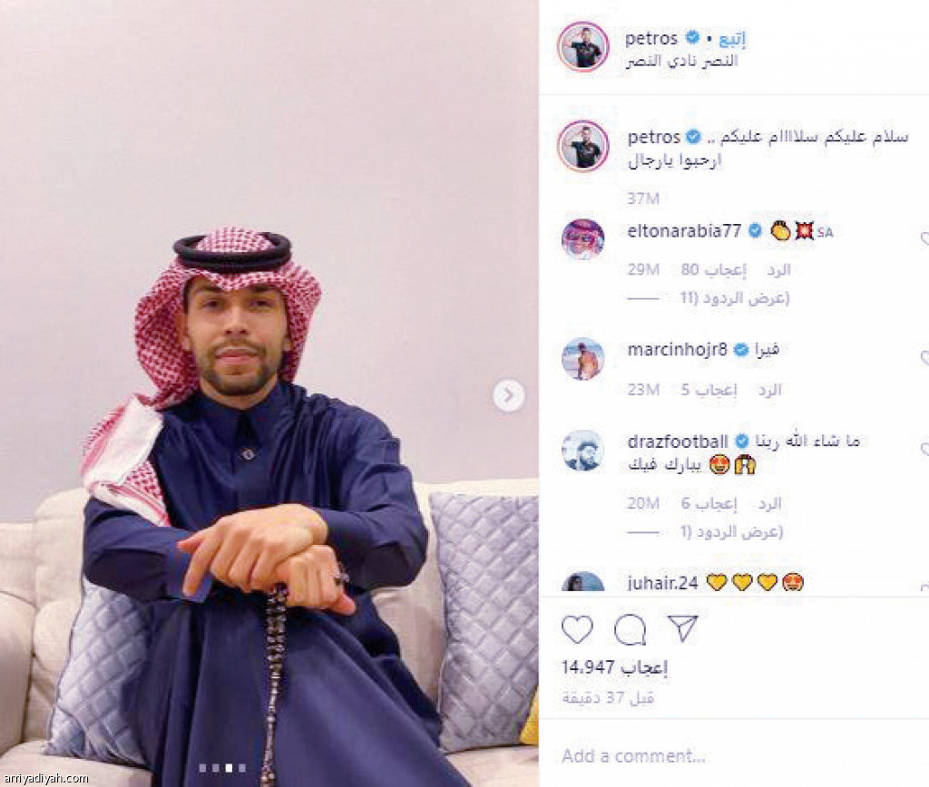 تفاعلت جماهير النصر بشكل كبير مع صور وفيديو البرتغالي روي فيتوريا، مدرب الفريق، واللاعبين الأجانب النيجيري أحمد موسى والبرازيليين مايكون وبيتروس وهم يرتدون الزي السعودي.
