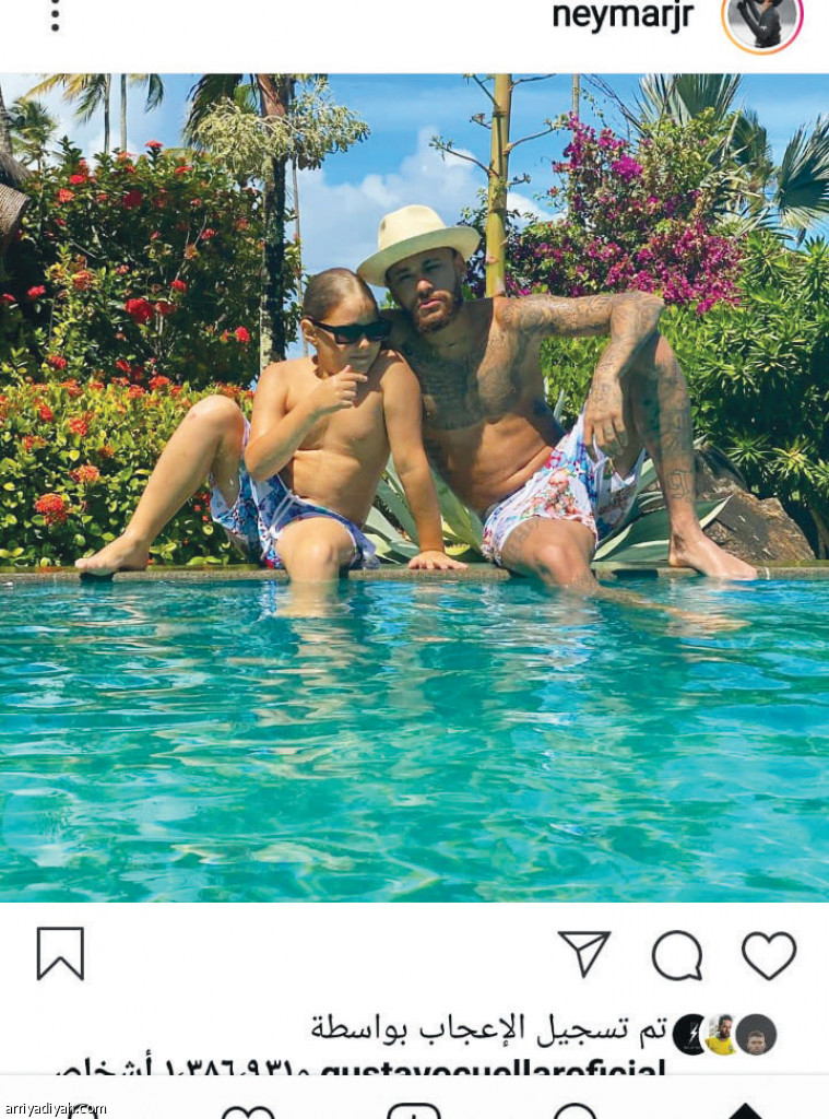 شارك البرازيلي نيمار متابعيه عبر إنستجرام بصورة مع ابنه الصغير. وعلق اللاعب الدولي على الصورة بقوله: “شريكي الصغير”، حيث حظيت بنحو 1.4 مليون إعجاب.