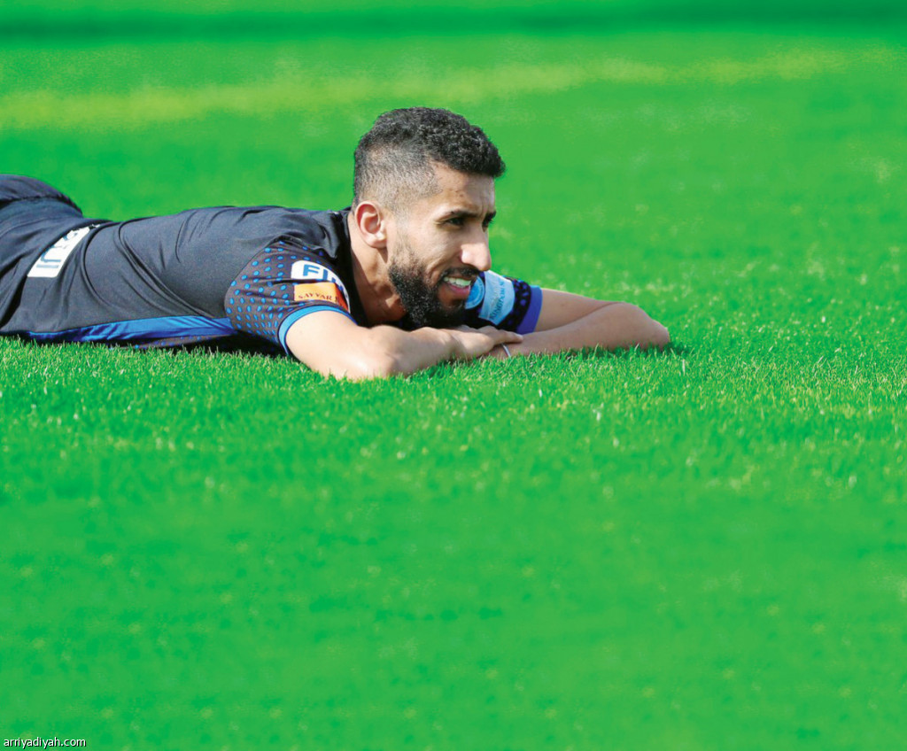 صورة التقطت أمس لسلمان الفرج لاعب فريق الهلال الأول لكرة القدم يتابع التدريب بعد أن واصل التأهيل جراء الإصابة التي تعرض لها قبل المشاركة العالمية (المركز الإعلامي ـ الهلال)