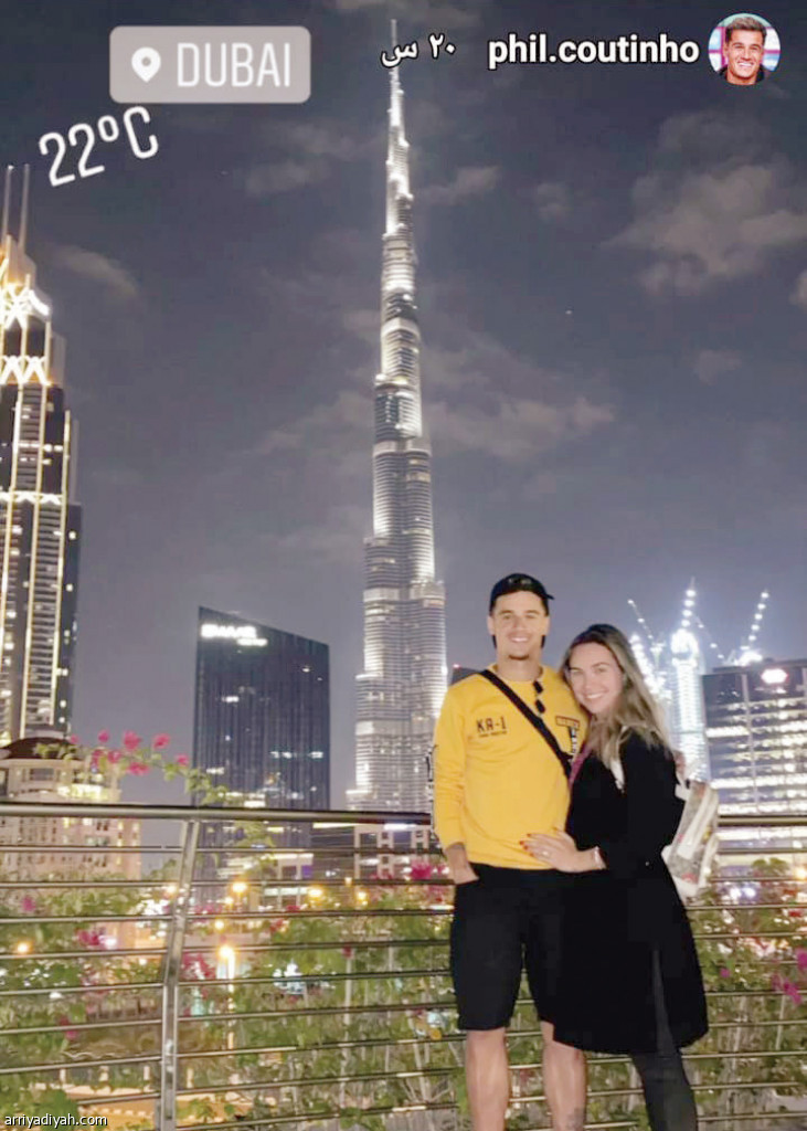اختار البرازيلي كوتينهو لاعب بايرن ميونيخ مدينة دبي للاحتفال بالعام الميلادي الجديد. ونشر كوتينهو عبر حسابه على إنستجرام صورة مع زوجته وخلفهما برج خليفة، بجانب فيديو يحمل ابنه في حديقة سفاري دبي يمر بحظيرة الأسود.