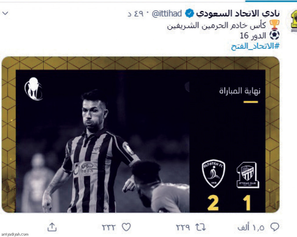 أما التفاعل الأكبر بعد المباراة فقد كان تغريدة حساب النادي في تويتر التي تضمنت نهاية المواجهة بخسارة الفريق، حيث وصلت الردود عليها نحو 1500 في نصف ساعة فقط.