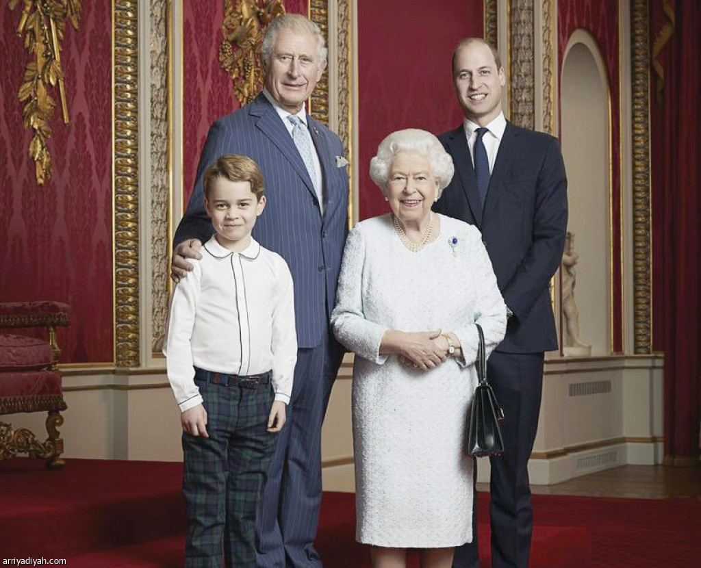 نشرت إليزابيث الثانية، ملكة بريطانيا، صورة جديدة لها بمناسبة العام الجديد مع أقرب ثلاثة لولاية العرش، هم الأمير تشارلز، نجلها الأكبر، والأمير ويليام، حفيدها، والأمير جورج، ابن حفيدها.