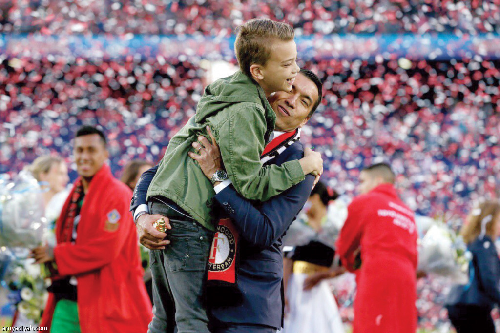 صورة التقطت لفان برونكهورست يحتفل مع ابنه بآخر ألقابه مع فينورد (أرشيفية)