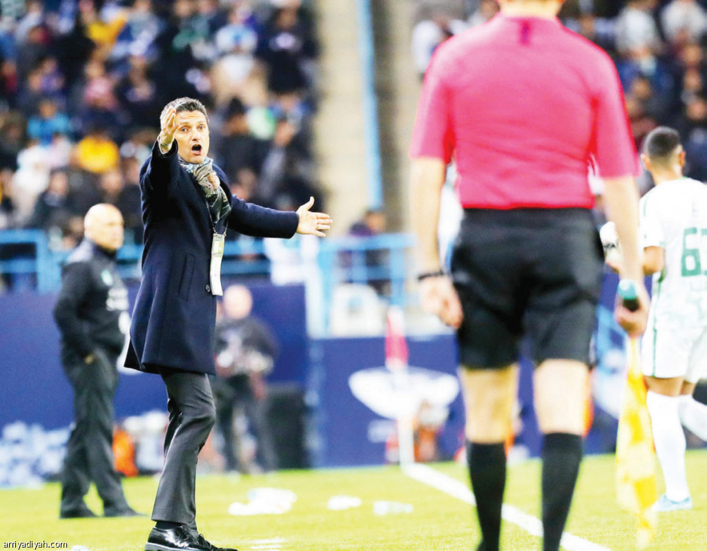 صورة التقطت أمس للروماني رازفان مدرب فريق الهلال يحتج أمام مساعد الحكم تصوير: علي الظاهري