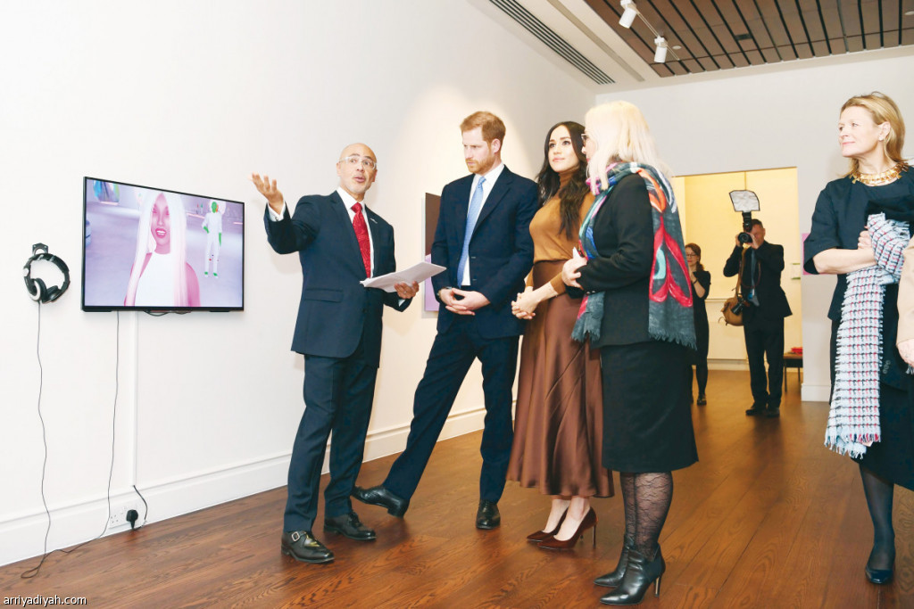 صورة التقطت لهاري دوق سايكس وميجان زوجته أثناء زيارتهما معرضًا فنيًّا عن التاريخ الكندي في كندا هاوس في لندن من أجل تقديم الشكر للاستقبال الحار الذي لقيه أثناء زيارته الأخيرة كندا