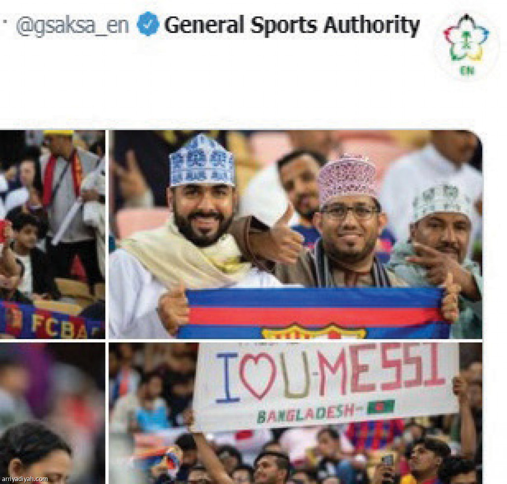 أظهرت صور نشرها حساب الهيئة العامة للرياضة على موقع التواصل الاجتماعي “تويتر” باللغة الإنجليزية حضوراً من مختلف الجنسيات في مدرجات ملعب مدينة الملك عبد الله الرياضية “الجوهرة” أثناء مباراة برشلونة وأتلتيكو مدريد ضمن بطولة كأس السوبر الإسباني.