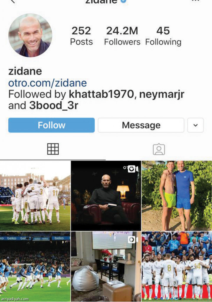 كما يملك المدرب الفرنسي 24.2 مليون متابع لحسابه الرسمي في إنستجرام. فيما يتابع زيدان بدوره 45 حسابًا منها حسابا ناديي ريال مدريد ويوفنتوس، وحسابات البرتغالي لويس فيجو والبرازيليين كاكا ورونالدو زملائه السابقين في الريال، إضافة إلى الإيطالي أندريا بيرلو. فيما لم تضم قائمته أيًا من نجوم فريقه الحاليين أو السابقين.