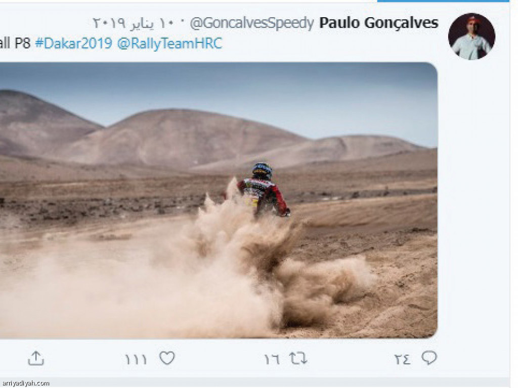 أظهرت حسابات مواقع التواصل الاجتماعي لباولو جونسالفيس الدراج البرتغالي الذي توفي أمس أثناء انقلاب دراجته خلال مشاركته في رالي داكار السعودية، إعجابه بالتضاريس التي مر بها خلال مساره في السباق.