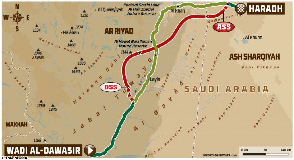 صورة من خريطة مسار المرحلة التاسعة من رالي داكار 2020