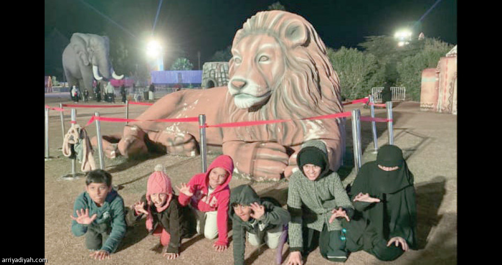 ومن بين الفيديوهات، ظهرت عائلة، تقلِّد الاحتفالية وخلفها أسدٌ.
