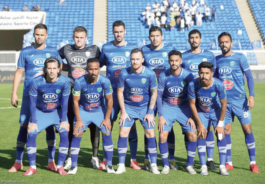 صورة التقطت أمس للاعبي الفتح قبل مواجهة أبها وتظهر رابطة الفريق في المدرجات (المركز الإعلامي ـ الفتح)