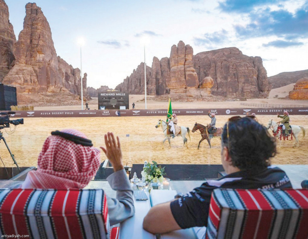 صورة التقطت أمس من منافسات بطولة بولو الصحراء في العلا (المركز الإعلامي ـ الهيئة العامة للرياضة)