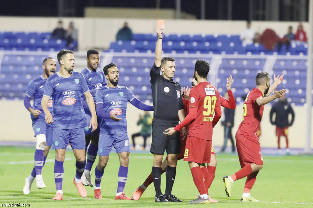 صورة التقطت أمس للحكم البولندي لحظة إشهار البطاقة الحمراء للعماري تصوير: عيسي الدبيسي