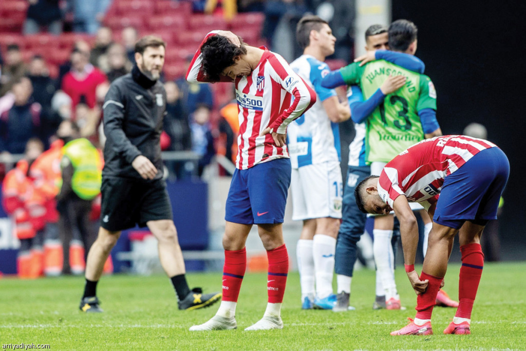 صورة التقطت أمس للبرتغالي جواو فيليكس مهاجم أتلتيكو مدريد متحسرًا بعد نهاية مباراة ليجانس (الأوروبية)