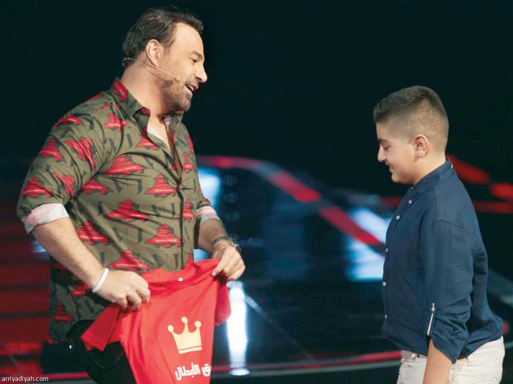 صورة التقطت أمس الأول لعاصي الحلاني مع أحد المتأهلين (المركز الإعلامي - إم بي سي)