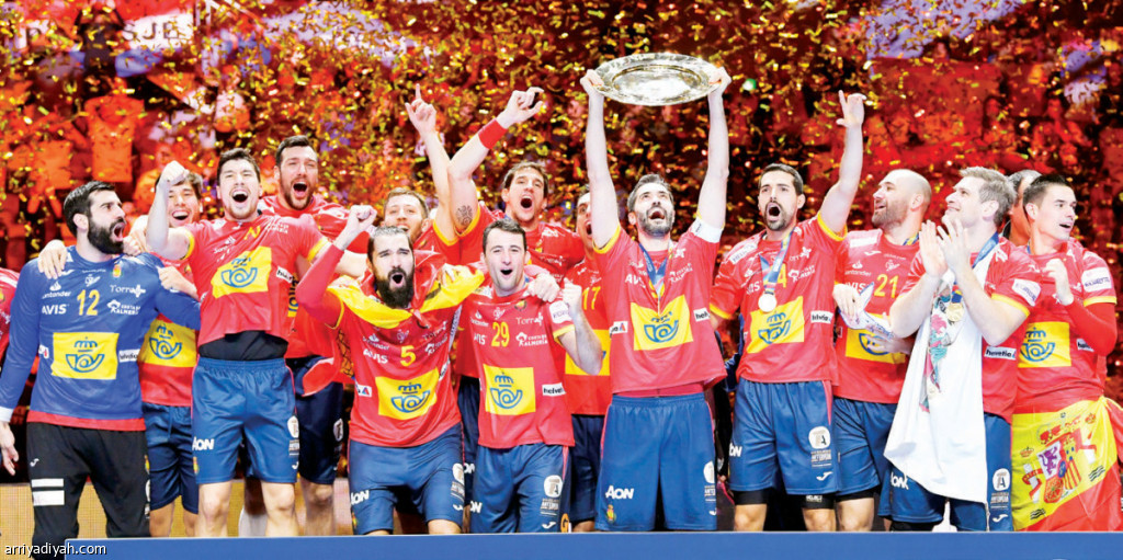 صورة التقت أمس للاعبي المنتخب الإسباني لكرة اليد يحتفلون باللقب الأوروبي على حساب كرواتيا (الأوروبية)