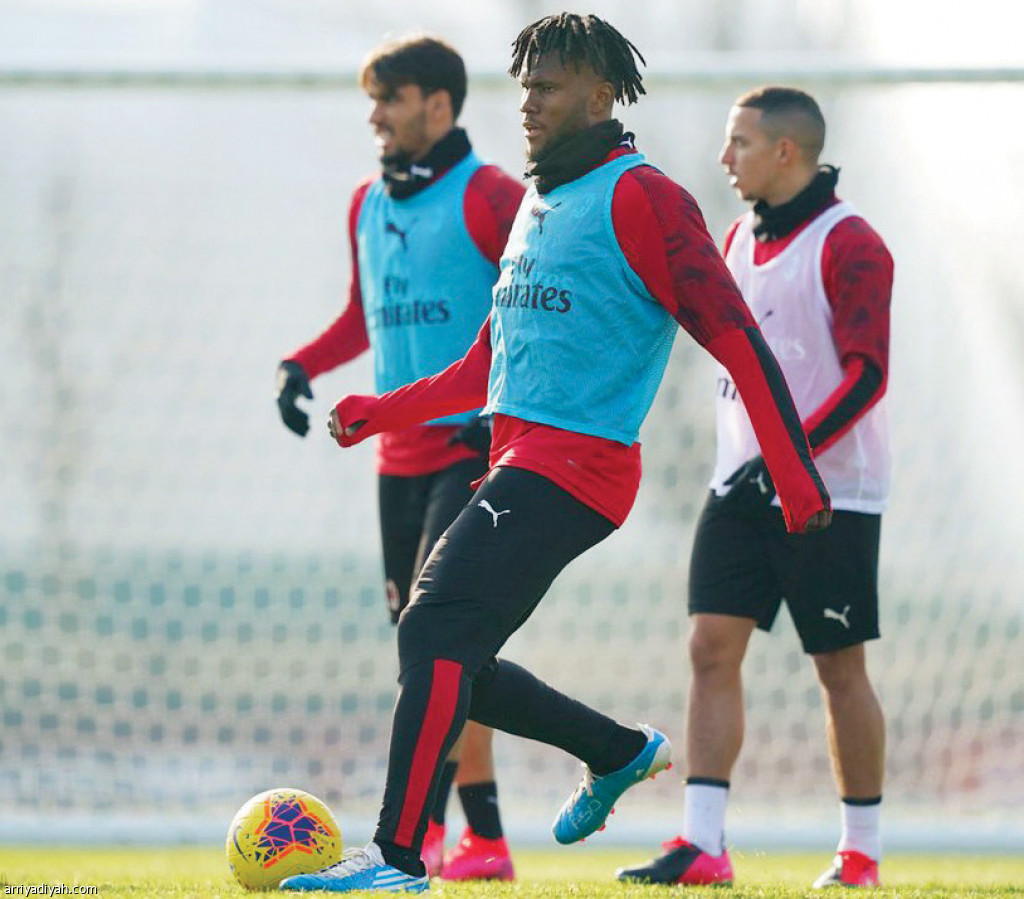 صورة التقطت أمس الإيفواري فرانك كيسي والجزائري إسماعيل بن ناصر والبرازيلي لوكاس باكيتا لاعبي ميلان يجرون التدريبات استعدادًا للمواجهة (المركز الإعلامي ـ ميلان)
