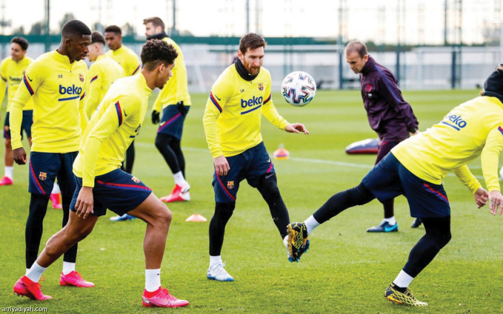 يستعد فريق برشلونة الإسباني الأول لكرة القدم لمواجهة نظيره ليجانيس غدًا في ختام الدور ثمن النهائي لمسابقة كأس الملك على ملعبه “كامب نو”.. وفي الصورة التي التقطت أمس ليونيل ميسي وجونيور فيربو وعثمان ديمبلي لاعبو برشلونة يُجرون التدريبات استعدادًا للمباراة (المركز الإعلامي - برشلونة)
