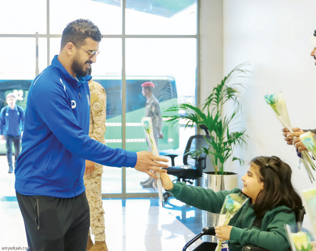 صورة التقطت أمس لعبد الله المعيوف حارس مرمى الهلال يتسلم وردة من طفلة حضرت في استقبال الفريق في مطار أبها (المركز الإعلامي ـ الهلال)