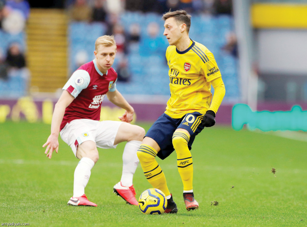 صورة التقطت أمس لمسعود أوزيل لاعب أرسنال وتشارلي تايلور لاعب بيرنلي في المباراة التي جمعتهما ضمن الجولة 25 من الدوري الإنجليزي لكرة القدم (رويترز)