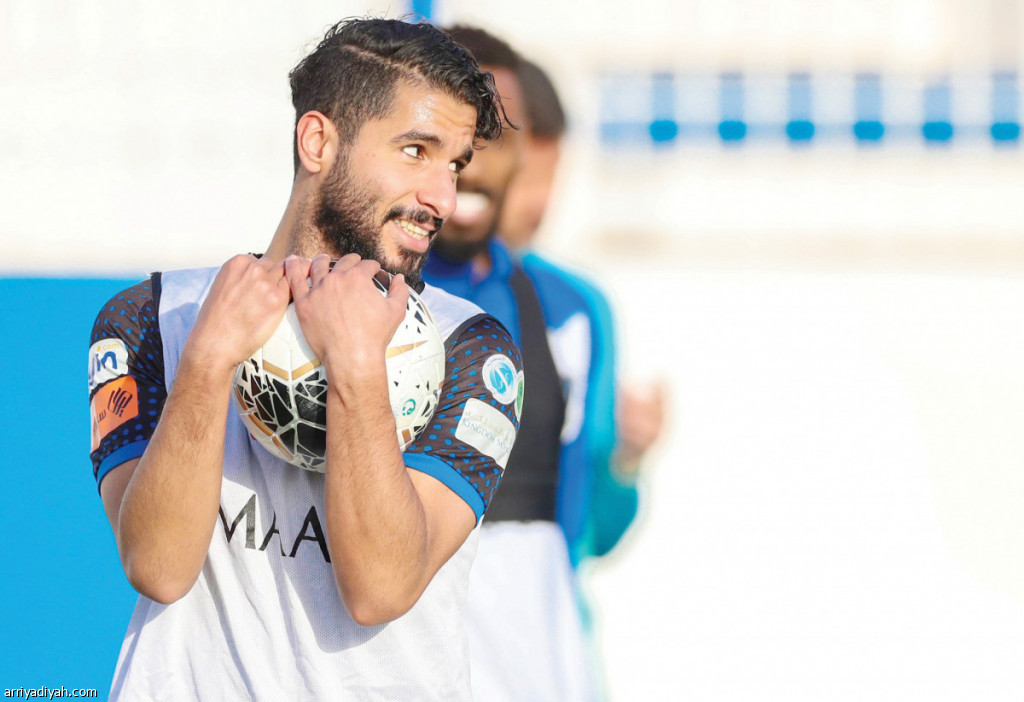 صورة التقطت أمس لصالح الشهري مهاجم الهلال يمسك كرة بيديه خلال الحصة التدريبية للفريق في مقر النادي في الرياض استعدادا لاستضافة الرائد بعد غد ضمن الجولة 17 من الدوري (المركز الإعلامي- الهلال)