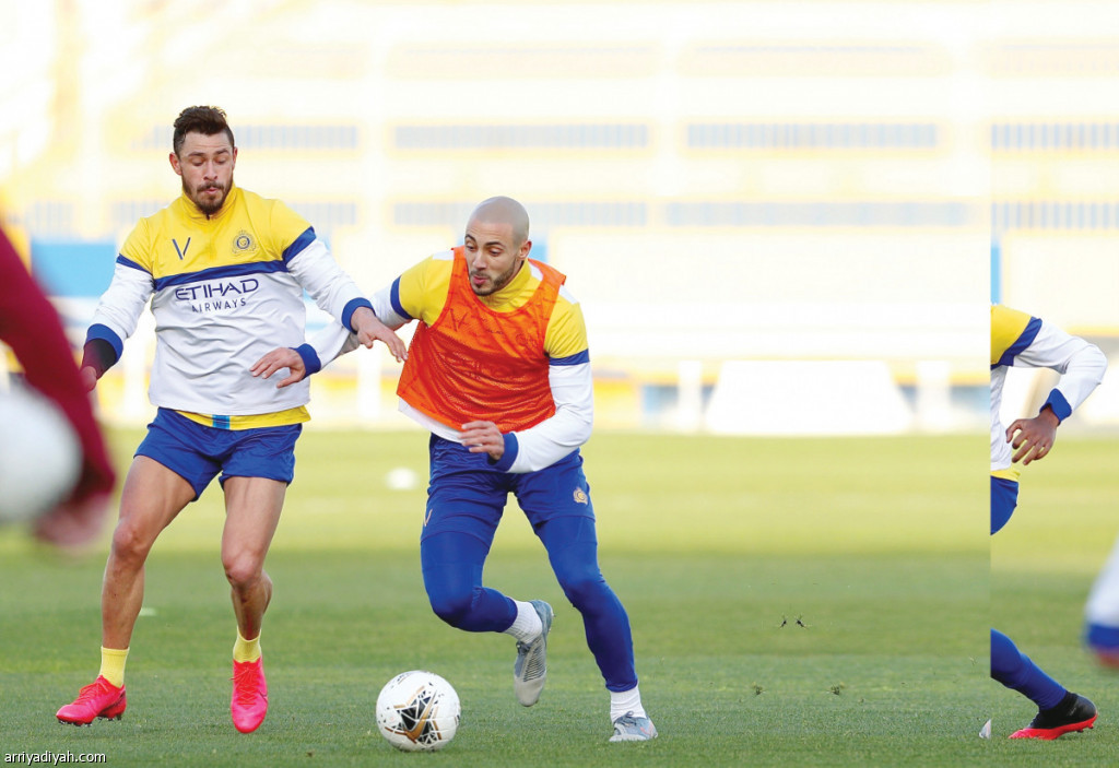 وشدد المدرب على لعب الكرة من لمسة واحدة. وأوضح للاعبيه، الذين قسمهم إلى مجموعتين، أن قلة عدد أهداف الفريق في المباريات الأخيرة سببه احتفاظ بعض لاعبي خط الوسط الزائد بالكرة. وأحرز النصر 4 أهدافٍ في مبارياته الرسمية الأربع الأخيرة.