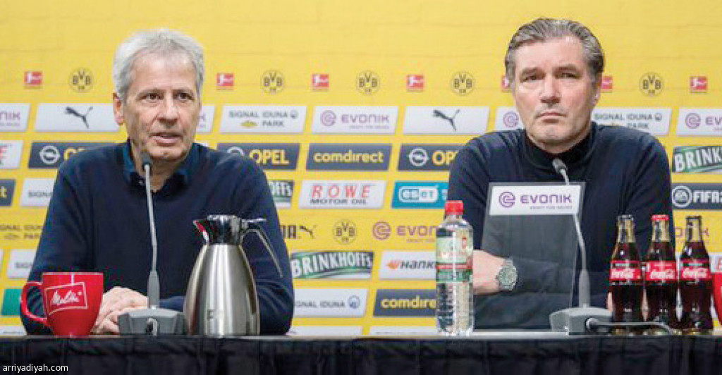 صورة التقطت أمس لفافري و زورك مدير الفريق أثناء المؤتمر الصحافي (المركز الإعلامي ـ دورتموند)