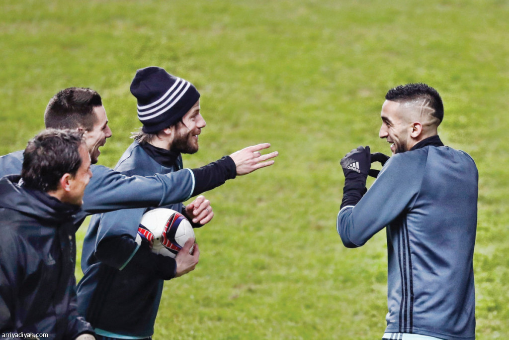 صورة التقطت لزياش في حوار ضاحك مع زملائه قبل إحدى الحصص التدريبية لفريق أياكس (أرشيفية)